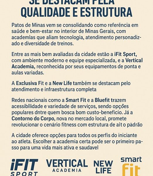 Patos de Minas vem se consolidando como uma referência em saúde, bem-estar e fitness no interior de Minas Gerais....